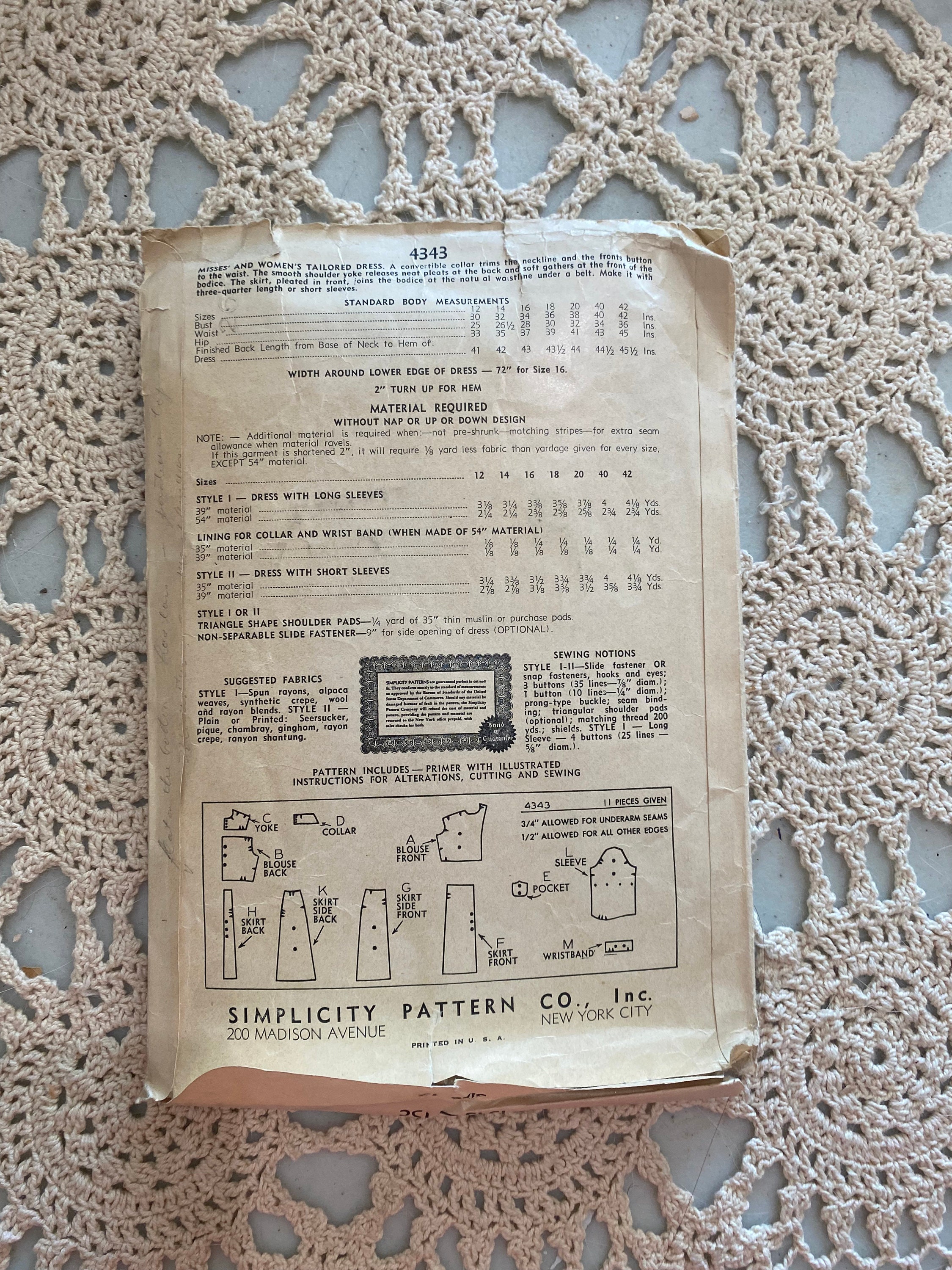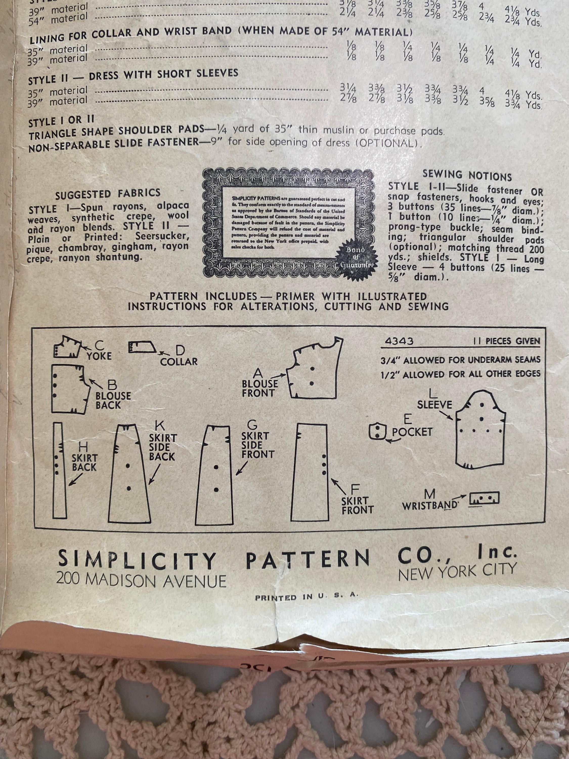 Simplicity Pattern 4343 Early Mid 1940s Misses And Etsy