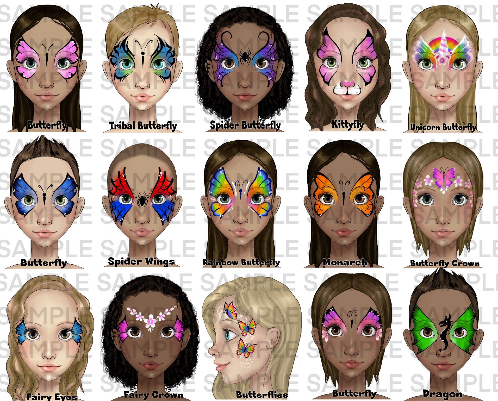 Face Painting Design Board Face Paint Design Menu Board Designs For Face Painters Boy Face Designs Girl Paint Designs Butterfly Batman Etsy Uk